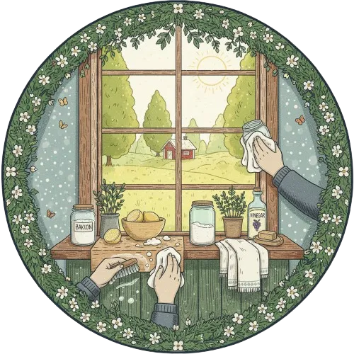 Combine one part white vinegar with one part water. Add a few drops of citrus essential oil for fragrance. This solution works well on most surfaces including countertops, sinks, and appliances.